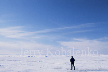 Below, some rough ice in Buchanan Bay. The tides here are the highest on the island, and the shoreline is shallow. These combine to produce some of the wickedest ice conditions outside the Arctic Ocean. Hauling a heavy sled through the worst of this stuff proceeds at a miserable pace of about 100 meters an hour.
