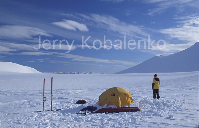 Camped on the icecap at the foot of Barbeau Peak, just before climbing the highest mountain in Canada and the US east of the Rockies.
