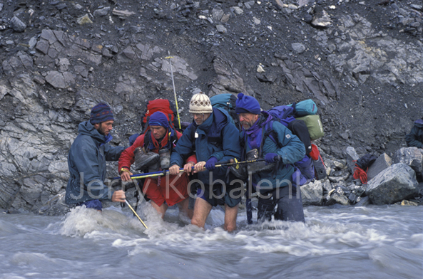 Crossing a glacier-fed stream in Quttinirpaaq National Park: the hardest part about summer hiking in the High Arctic, especially during warm spells when those streams can run dangerously high.
