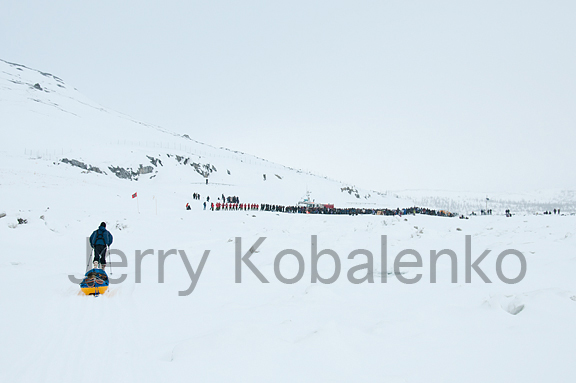 In the next few days, I'll cover some aspects of our journey, which was inspired by Noah's dream of reviving traditional Inuit travel that for a couple of generations now has been replaced by snowmobiles and motorboats. For now, here are a few images from the journey, including our wonderful arrival in Kangiqsualujjuaq, where almost half the town came out to greet us. From a distance, the line of people looked like a forest.