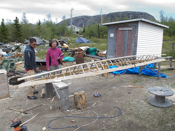 Noah and his two partners, Lev Tarasov and Rod MacKinnon, leave Nain today to paddle 900 kilometres to Kangiqsualujjuaq via the Torngats, Killinek and Ungava Bay. Noah will be using the same homemade boat he had last year, below, while his partners will go with modern plastic kayaks. Fair winds to them!