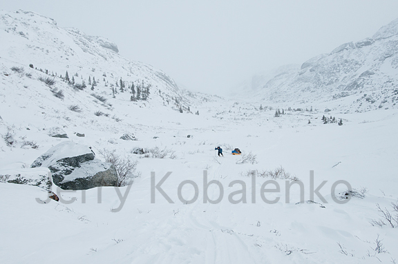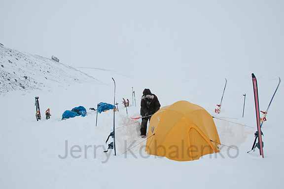 If it looked like a storm was coming, we built a snow wall. Once we excavated a pit to lower the profile of the tent. And we were very conservative, stopping early when the wind seemed to be rising to a velocity where setting up the tent would be difficult. On these expeditions, mileage is important, but the most important act of the day is getting the tent up securely in the evening.