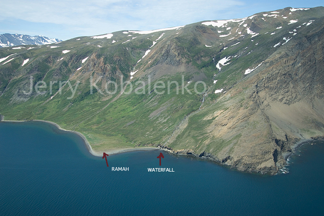 Tonight, Noah Nochasak, Rod MacKinnon and Lev Tarasov are camped at the abandoned Moravian village of Ramah, in northern Labrador's Torngat Mountains. As I've previously mentioned, they're out of touch and I can only make guesses about what's going on from Noah's daily Spot position reports and my own kayaking experience in the area. They've gone into Ramah Bay a fair way perhaps partly to see the historic ruins, but certainly also because the outer part of the bay has no good camp spots. It's all just rough and rocky coastline. Ramah, though, has a gentle beach and a small waterfall nearby that used to be the village's source of drinking water.