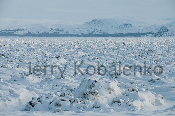 Why such a huge discrepancy in times over the same distance? Because travel speed is largely about snow and ice and weather conditions. We had near-constant headwinds, relatively poor snow and surprisingly rough ice along the George River. Here, the rapids froze in a jumble of ice blocks that was at times comparable to rough pressure or tidal ice. And when we neared the mouth of the river, we had Ungava Bay's huge tides to contend with. Below, what confronted us on our second to last day; adversarial conditions to the very end. Luckily, by then the sleds were light enough that we could horse them over and around these blocks; with fully laden sleds, this sort of ice is a one- to two-kilometre per day ordeal.