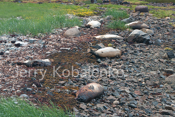 Dead harp seals at the abandoned fishing village of Ailik, near Makkovik, Labrador.