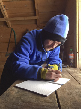 November 13 In the magazine biz, the slush pile refers to those stories that haven't been commissioned, that writers, usually amateurs, have sent to the editors in the hope that they will get published. It's very rare that they do, because the stories are almost never good. When I was editing an outdoor magazine, we received many hiking articles. Hiking is a deceptively hard subject, because it's rare that anything interesting happens on a trip. Tim Cahill, whose Outside magazine columns were some of the best outdoor writing I've ever read, once said that when travel writers have nothing to say about a place, they get spiritual. That was the case with many of the slush pile entries I screened. One hapless fellow often submitted. He was an outdoor educator and traveled a lot. One day, I received an unsolicited article from him that seemed vaguely familiar. I went through the slush folder and found two other hiking articles that he had previously sent in. One of them began, "Look! A caribou!" The second: "Look there! A whale!" The most recent: "Look! A moose." He had begun each piece with the same bad lead, mistakenly thinking that this was the ideal entree into the story. But as the head editor pointed out, "Quote leads went out with hoop skirts." May 30 When I started writing magazine articles, occasionally I'd bog down in the middle of the piece and not know how to proceed. My notes didn't point the way out of these dead ends and I'd find myself blue skying it -- writing off the top of my head. This doesn't work with nonfiction, and the problem eventually became clear: I hadn't done enough research to support the article through its twists and turns. I haven't had that problem in years, because I know now to gather enough material. Sometimes, of course, you bog down and have to work your way out of it, but with enough research to draw on, there is always an exit. May 21 On June 2, I'm giving a talk on Risk and Adventure, and then taking part in a panel discussion about it at The North Face store in Banff, Alberta. Details here. March 29 Check out this profile of Jerry in the online adventure magazine, Limitless Pursuits. March 28, 2015 On every expedition, I spend about an hour a day making notes, usually in the lull between soup and supper, when I'm melting water for the Thermos. The stove warms up the tent enough that I can usually write with bare hands or liner gloves. In the cold, where ink freezes, I use a mechanical pencil, insulated with moleskin. I start with the basics: how many hours we went, how far we made, weather, travel conditions, any wildlife sightings. What was the terrain like? Did it change from the day before? How do my partner and I feel? Any good jokes between us? Any phrases or metaphors that popped into my head during the day that describe some aspect of the journey well? Those are particularly useful; I include them in my blueprint when I'm mapping out some future story or chapter. For example, the Quadruped Principle: four-legged animals haul more strongly than two-legged ones, and one of the technical aspects of manhauling (which few beginners grasp) is that ski poles function not for balance or as feelers but as third and fourth legs. The longer the journey, the more you use your arms. (At first, they're just not strong enough.) By the end of an expedition, your triceps should be as well-developed as your thighs. On this latest expedition, my partner James MacKinnon is also a writer. (Here's a link to a recent piece of his in The New Yorker.) We had the usual writerly conversations about how hard it is to make a living, and had a good laugh about the cattiness of writers gatherings. About his bestselling The 100-Mile Diet, one author asked him, "So, did you set out to write a middlebrow book?" James also diligently recorded his impressions, and every evening, the conversation died for an hour as we scribbled. For me, my notebooks form the basis of articles and books. They refresh my memory, add detail and enrich the language. In a disaster, if I could only save one thing from our house, it would be them.
