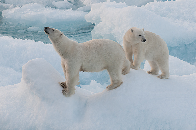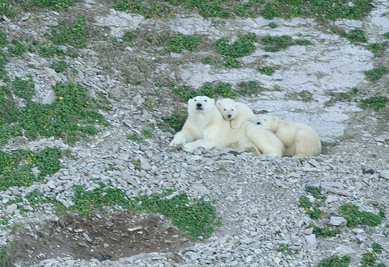 Seen from the deck of a 137-metre ship, polar bears are, for once, not intimidating.