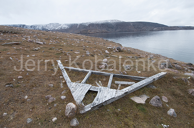 Etah: The remains of U.S. explorer Donald MacMillan's Borup Lodge, from 1913-17. Right, the outline of the house, which had been blown down by katabatic winds ripping down from the Greenland ice sheet.
