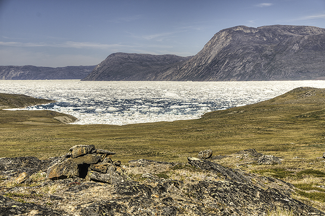 I had a couple of hours off during our visit to track down the location of Etah, and also another nearby historic site that I'd long wanted to visit: the 1860 grave of August Sonntag, one of Isaac Israel Hayes' men. He purportedly died from hypothermia after falling through the ice, although an accusation circulated by the paranoid Hayes suggested that he'd been murdered by the celebrated Greenland guide Hans Hendrik.