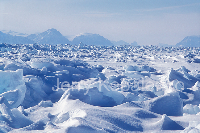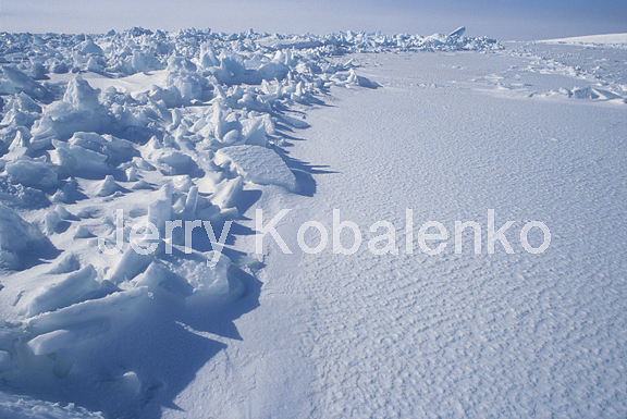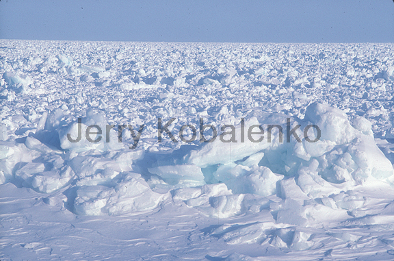 High Arctic sea ice can be as flat as freshwater lake ice, except for hard, wind-carved snow waves called sastrugi. In some areas, though, broken ice pieces from the previous year, or early-winter ice pressed up near land by tides and currents, create a formidable barrier to foot travel.