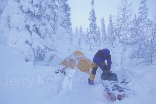 It's a difficult life in the -50s, but liveable with the right gear. I sleep fine; the main issue is that you can only use your hands for a few seconds at a time, no matter what gloves or mitts you're wearing. You take one tent pole out of the sleeve, then you have to warm up your hands in your pockets or against your neck or belly for a few minutes before feeling returns and you can use them again. Breaking camp takes forever.