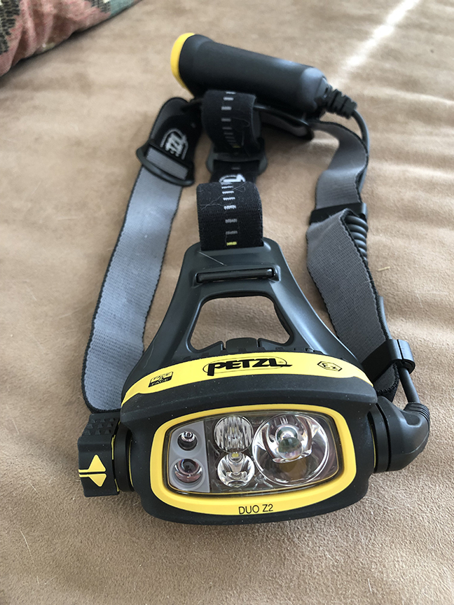 Picked up my first piece of new gear in a while, a Petzl Duo Z2 headlamp. Its many settings range from close/wide to telescopic searchlight, and it casts up to 430 lumens. Why does an arctic traveler need a US$250 headlamp that boasts of being usable in combustible gas environments? In the High Arctic travel season, from late March till early September, you don't need an artificial light of any kind, because the sun is always above the horizon. But in the low Arctic, or in late summer, when night returns to the North, typical headlamps will not throw enough light to alert you in time that a polar bear is approaching.